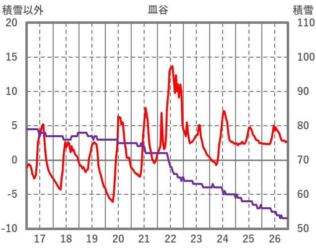 | 日 | 時 | 気温 | 降水 | 風向/風速 | 日照 | 積雪 | 降雪 |