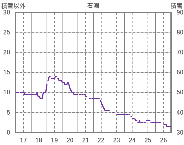 | 日 | 時 | 気温 | 降水 | 風向/風速 | 日照 | 積雪 | 降雪 |