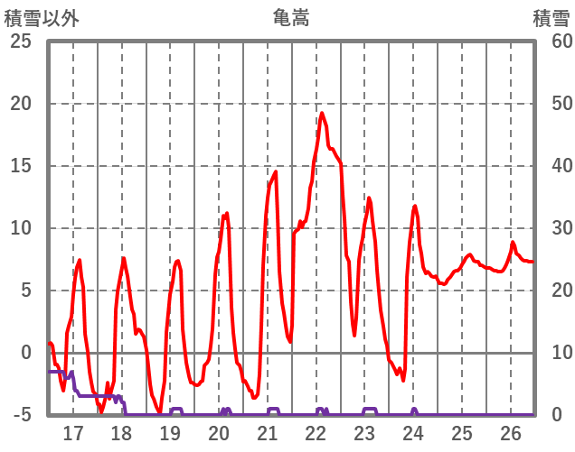 | 日 | 時 | 気温 | 降水 | 風向/風速 | 日照 | 積雪 | 降雪 |