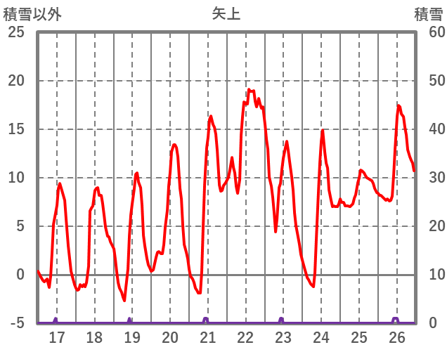| 日 | 時 | 気温 | 降水 | 風向/風速 | 日照 | 積雪 | 降雪 |