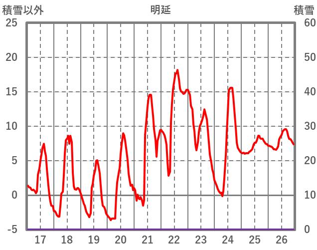 | 日 | 時 | 気温 | 降水 | 風向/風速 | 日照 | 積雪 | 降雪 |