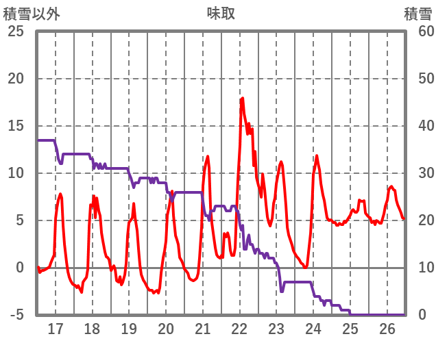 | 日 | 時 | 気温 | 降水 | 風向/風速 | 日照 | 積雪 | 降雪 |