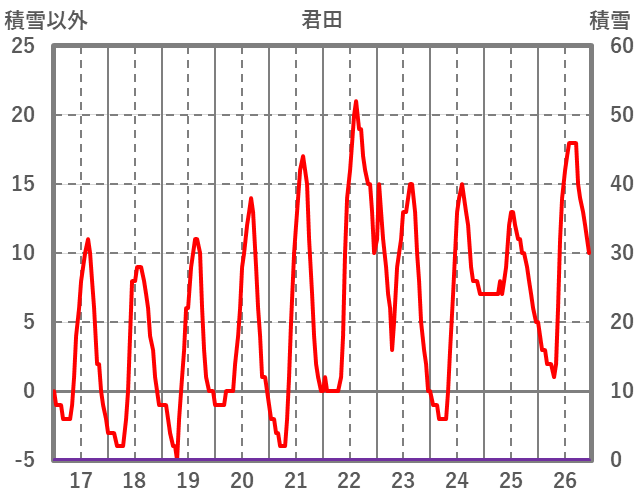 | 日 | 時 | 気温 | 降水 | 風向/風速 | 日照 | 積雪 | 降雪 |