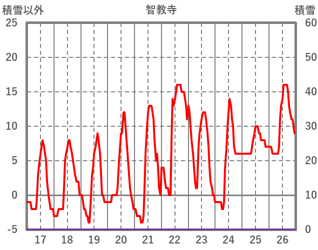 | 日 | 時 | 気温 | 降水 | 風向/風速 | 日照 | 積雪 | 降雪 |