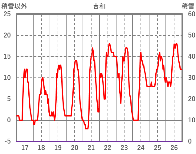 | 日 | 時 | 気温 | 降水 | 風向/風速 | 日照 | 積雪 | 降雪 |