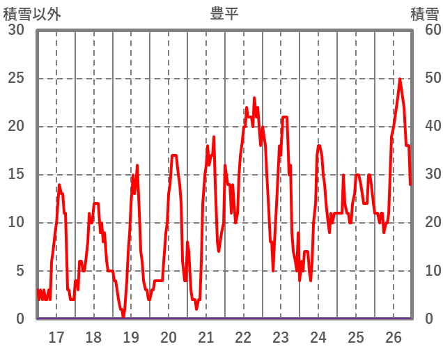 | 日 | 時 | 気温 | 降水 | 風向/風速 | 日照 | 積雪 | 降雪 |