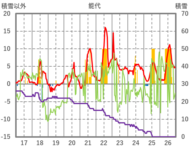| 日 | 時 | 気温 | 降水 | 風向/風速 | 日照 | 積雪 | 降雪 |