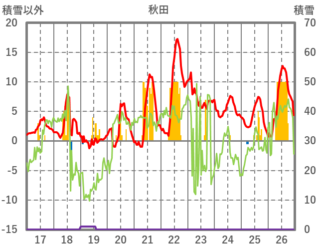 | 日 | 時 | 気温 | 降水 | 風向/風速 | 日照 | 積雪 | 降雪 |