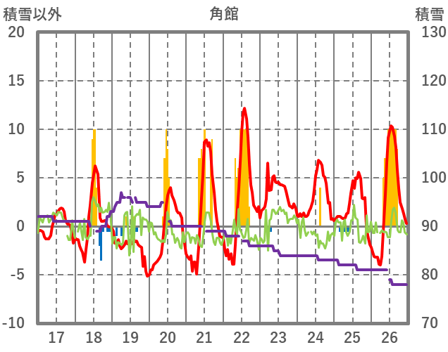 | 日 | 時 | 気温 | 降水 | 風向/風速 | 日照 | 積雪 | 降雪 |
