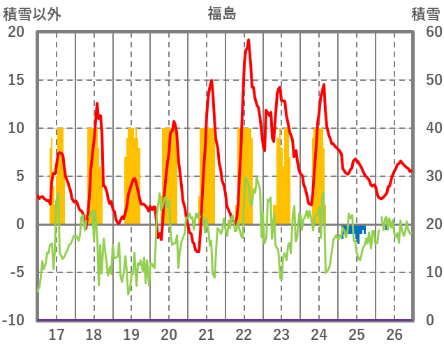 | 日 | 時 | 気温 | 降水 | 風向/風速 | 日照 | 積雪 | 降雪 |