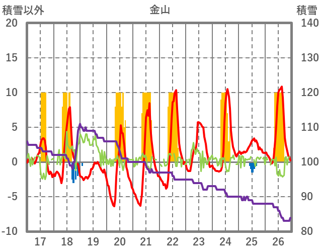| 日 | 時 | 気温 | 降水 | 風向/風速 | 日照 | 積雪 | 降雪 |