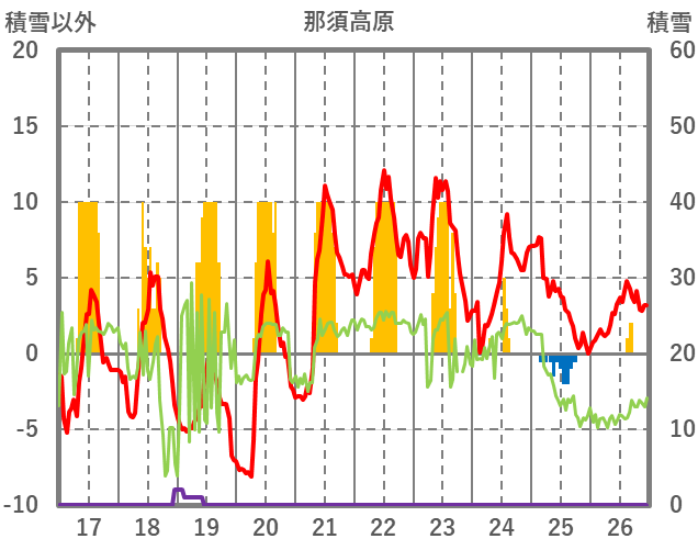 | 日 | 時 | 気温 | 降水 | 風向/風速 | 日照 | 積雪 | 降雪 |