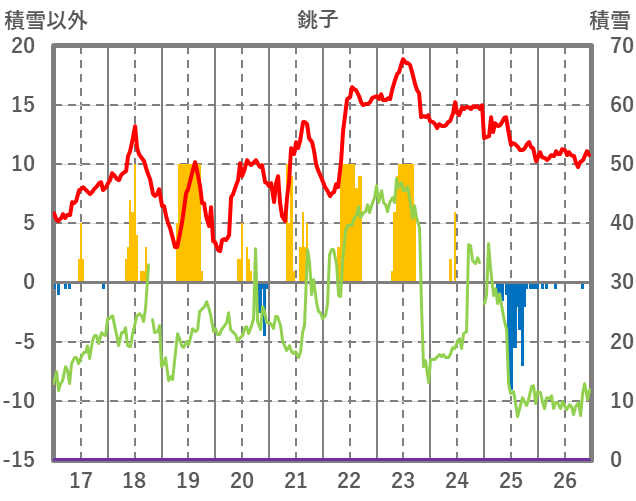 | 日 | 時 | 気温 | 降水 | 風向/風速 | 日照 | 積雪 | 降雪 |