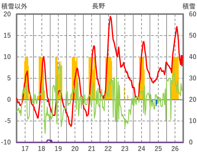 | 日 | 時 | 気温 | 降水 | 風向/風速 | 日照 | 積雪 | 降雪 |