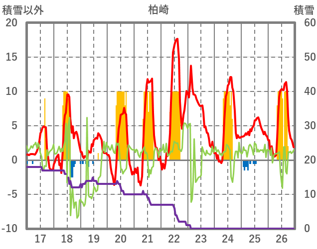 | 日 | 時 | 気温 | 降水 | 風向/風速 | 日照 | 積雪 | 降雪 |