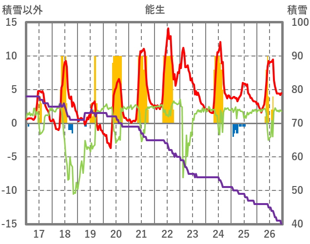 | 日 | 時 | 気温 | 降水 | 風向/風速 | 日照 | 積雪 | 降雪 |
