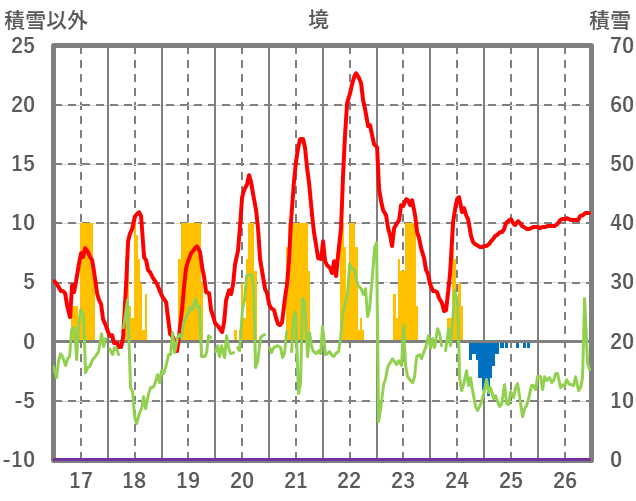 | 日 | 時 | 気温 | 降水 | 風向/風速 | 日照 | 積雪 | 降雪 |
