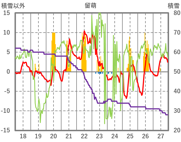 | 日 | 時 | 気温 | 降水 | 風向/風速 | 日照 | 積雪 | 降雪 |