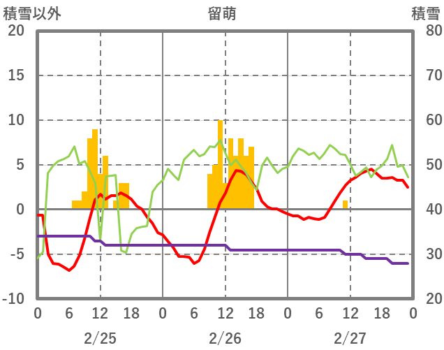 | 日 | 時 | 気温 | 降水 | 風向/風速 | 日照 | 積雪 | 降雪 |