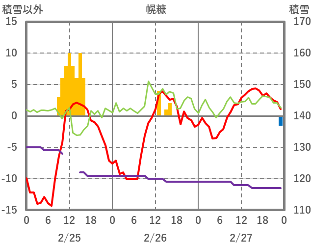 | 日 | 時 | 気温 | 降水 | 風向/風速 | 日照 | 積雪 | 降雪 |