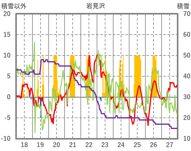 | 日 | 時 | 気温 | 降水 | 風向/風速 | 日照 | 積雪 | 降雪 |