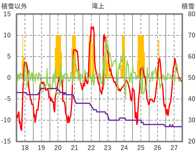 | 日 | 時 | 気温 | 降水 | 風向/風速 | 日照 | 積雪 | 降雪 |
