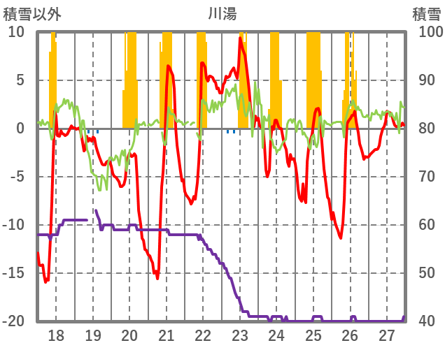 | 日 | 時 | 気温 | 降水 | 風向/風速 | 日照 | 積雪 | 降雪 |