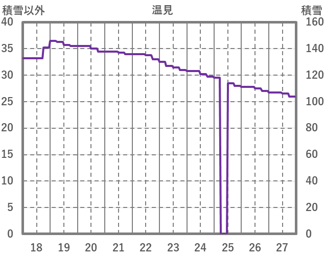 | 日 | 時 | 気温 | 降水 | 風向/風速 | 日照 | 積雪 | 降雪 |