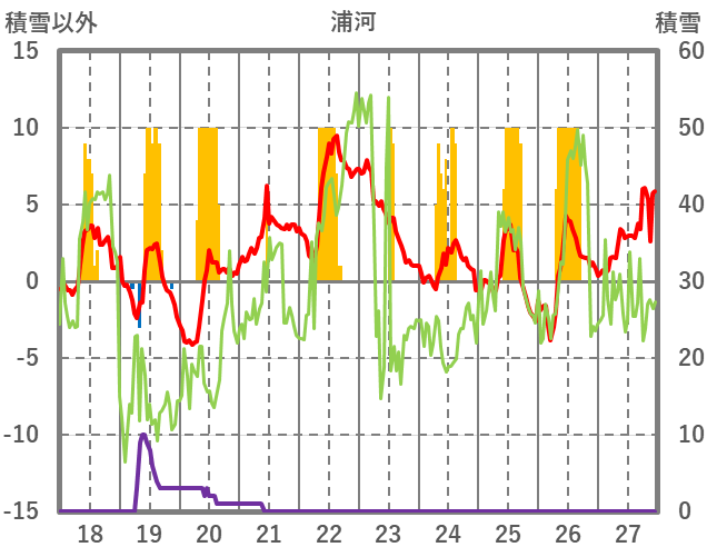 | 日 | 時 | 気温 | 降水 | 風向/風速 | 日照 | 積雪 | 降雪 |