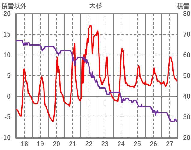 | 日 | 時 | 気温 | 降水 | 風向/風速 | 日照 | 積雪 | 降雪 |