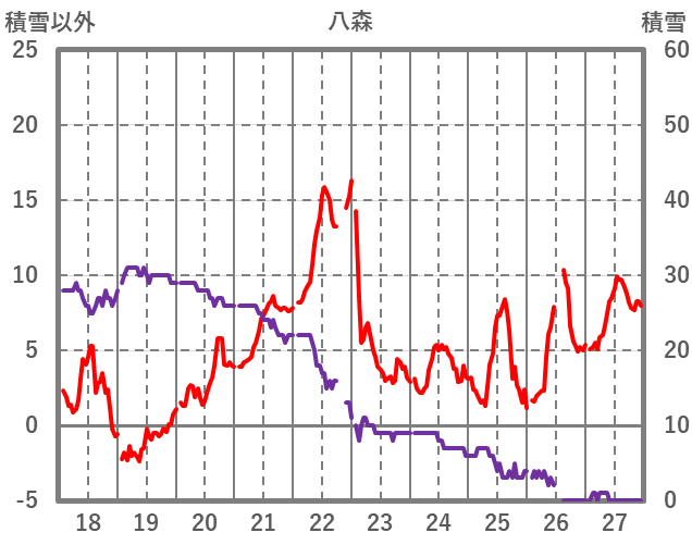 | 日 | 時 | 気温 | 降水 | 風向/風速 | 日照 | 積雪 | 降雪 |