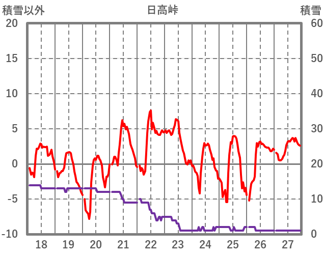 | 日 | 時 | 気温 | 降水 | 風向/風速 | 日照 | 積雪 | 降雪 |