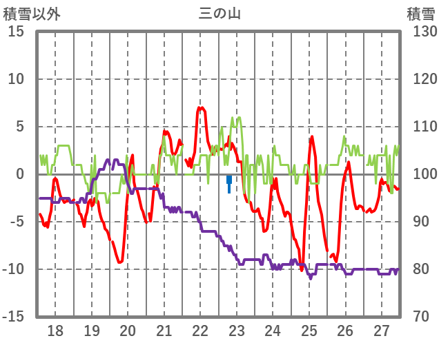 | 日 | 時 | 気温 | 降水 | 風向/風速 | 日照 | 積雪 | 降雪 |