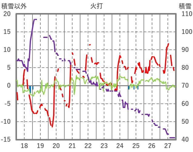 | 日 | 時 | 気温 | 降水 | 風向/風速 | 日照 | 積雪 | 降雪 |