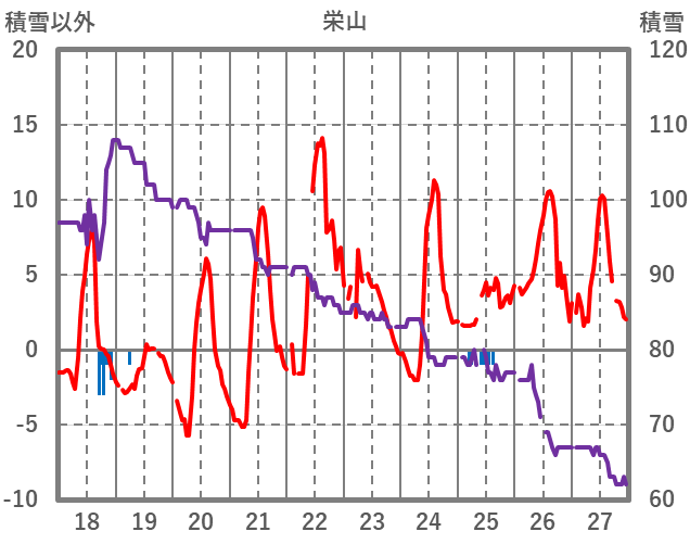 | 日 | 時 | 気温 | 降水 | 風向/風速 | 日照 | 積雪 | 降雪 |