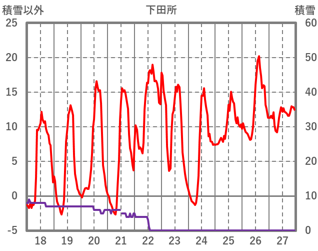 | 日 | 時 | 気温 | 降水 | 風向/風速 | 日照 | 積雪 | 降雪 |