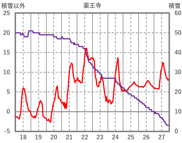 | 日 | 時 | 気温 | 降水 | 風向/風速 | 日照 | 積雪 | 降雪 |