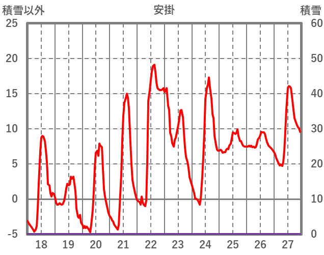 | 日 | 時 | 気温 | 降水 | 風向/風速 | 日照 | 積雪 | 降雪 |