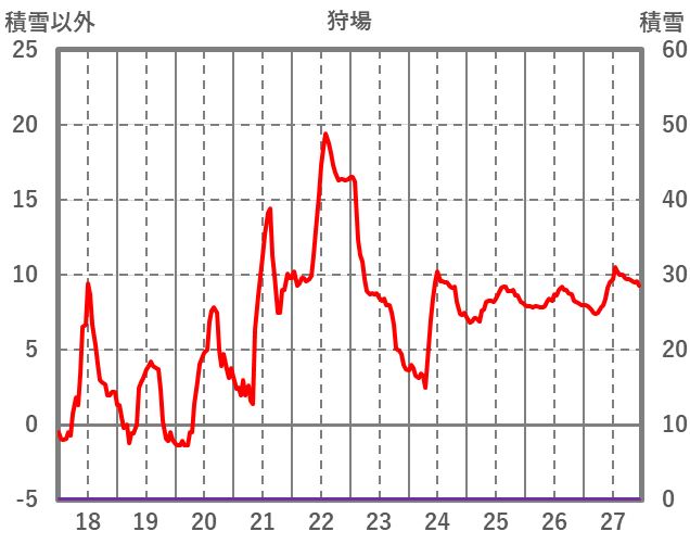 | 日 | 時 | 気温 | 降水 | 風向/風速 | 日照 | 積雪 | 降雪 |