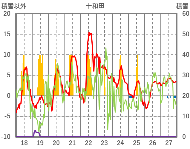 | 日 | 時 | 気温 | 降水 | 風向/風速 | 日照 | 積雪 | 降雪 |