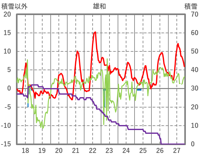 | 日 | 時 | 気温 | 降水 | 風向/風速 | 日照 | 積雪 | 降雪 |