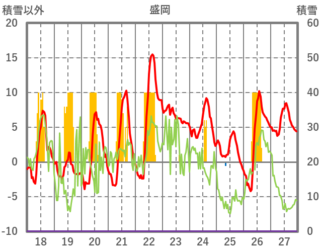 | 日 | 時 | 気温 | 降水 | 風向/風速 | 日照 | 積雪 | 降雪 |