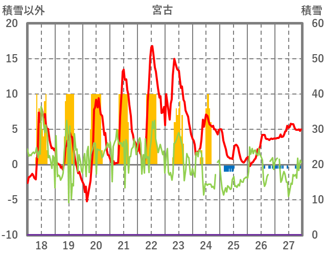 | 日 | 時 | 気温 | 降水 | 風向/風速 | 日照 | 積雪 | 降雪 |