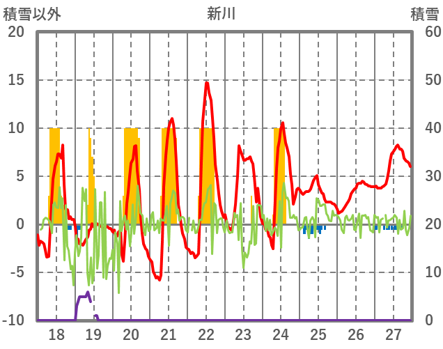 | 日 | 時 | 気温 | 降水 | 風向/風速 | 日照 | 積雪 | 降雪 |