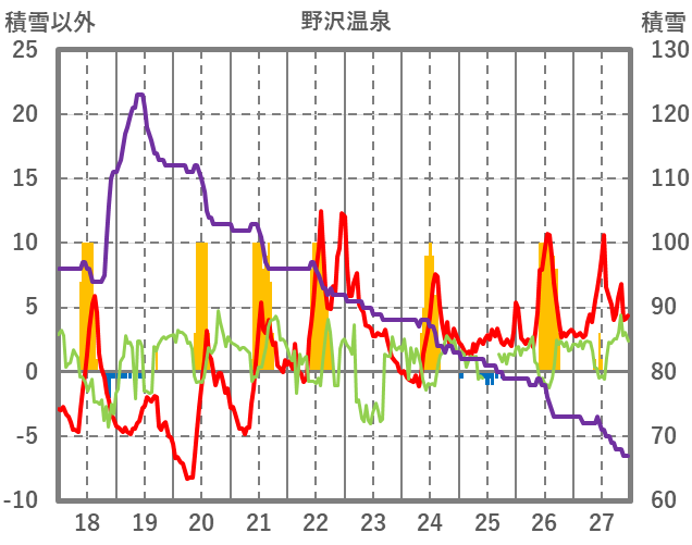 | 日 | 時 | 気温 | 降水 | 風向/風速 | 日照 | 積雪 | 降雪 |