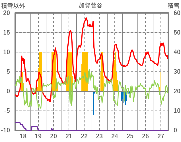 | 日 | 時 | 気温 | 降水 | 風向/風速 | 日照 | 積雪 | 降雪 |