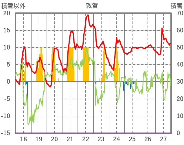 | 日 | 時 | 気温 | 降水 | 風向/風速 | 日照 | 積雪 | 降雪 |