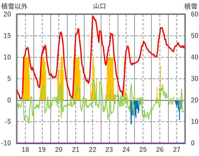 | 日 | 時 | 気温 | 降水 | 風向/風速 | 日照 | 積雪 | 降雪 |