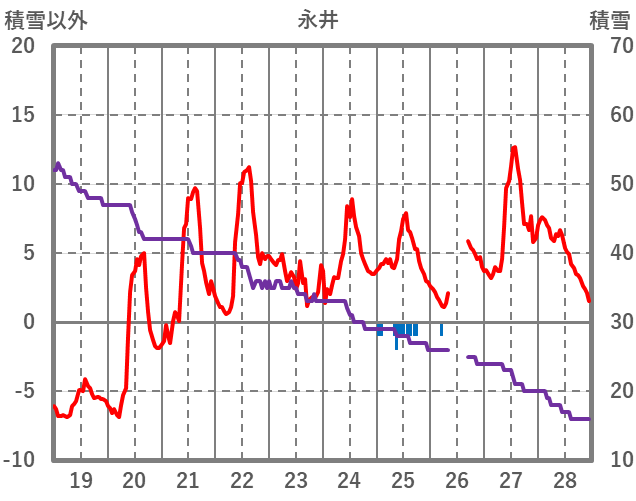 | 日 | 時 | 気温 | 降水 | 風向/風速 | 日照 | 積雪 | 降雪 |