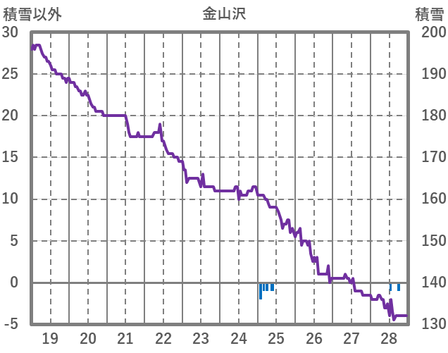 | 日 | 時 | 気温 | 降水 | 風向/風速 | 日照 | 積雪 | 降雪 |